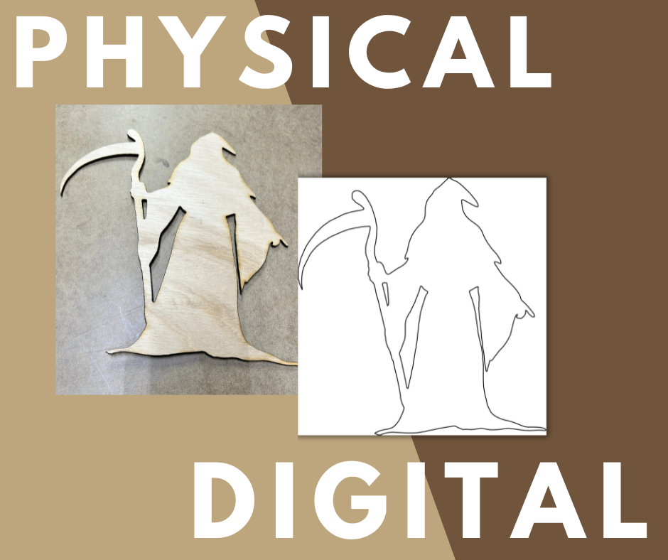 This Grimm Reaper Stencil is approx 9" tall and 6" wide.