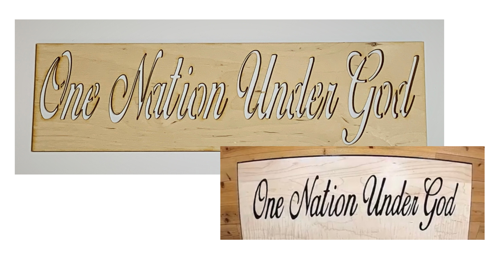 This "One Nation Under God" Template is made from 1/8 inch Birch Plywood. The approx. size is 15.75" x 5.25"